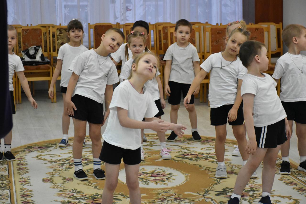 Ярким моментом дня стала зарядка «Учимся с Масиком и Малышкой». Под веселую музыку дети с восторгом повторяли движения за любимыми персонажами. Это было не просто выполнение упражнений, а настоящий танец здоровья!